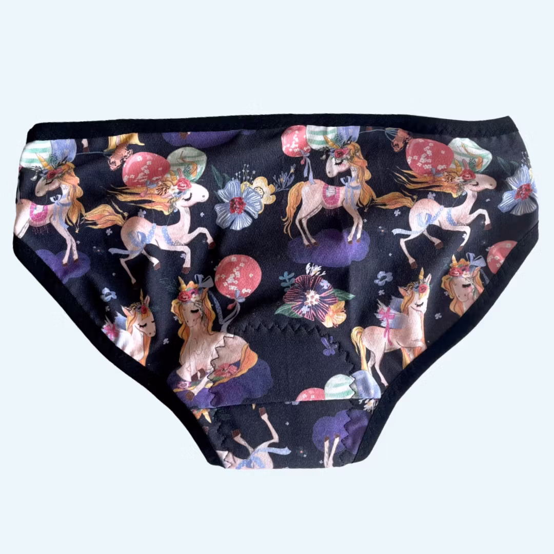 Menstrosorna är handsydda i Sverige av OEKO-TEX certifierade tyger. Sydda av mjuk bomull i färgglada motiv med mjuk vikresår i ben och midja. Tygerna har tvättats innan tillverkning för att behålla så bra passform som möjligt. Menstrosorna innehåller inget blekmedel, kemikalier eller parfymer.